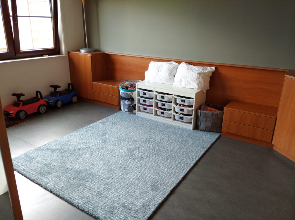 Onze oude slaapkamer werd dan de speelkamer/dressing (want de kleren van Marcel en mij zitten er nog in de kast), en dat is ook een succes. Victor en Leon hebben er al heel fijn gespeeld, de Lego heeft een gebruiksvriendelijke plek gekregen en in de kasten is er stofvrij plaats voor gemaakte bouwwerken.