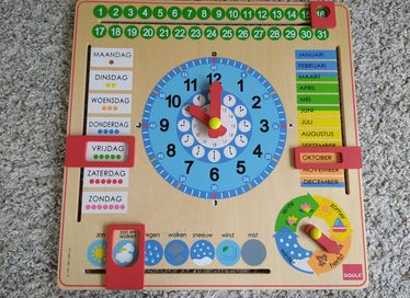 Wij hebben het onze gekocht bij bol.com, het heet Goula houten kalenderklok. Marie zal dat ook wel leuk vinden, ja!